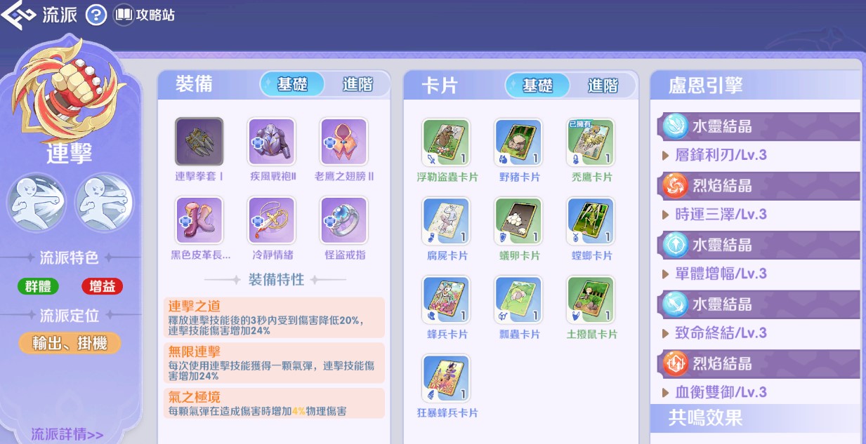 基礎:與連擊流相同,側重基礎物理攻擊。