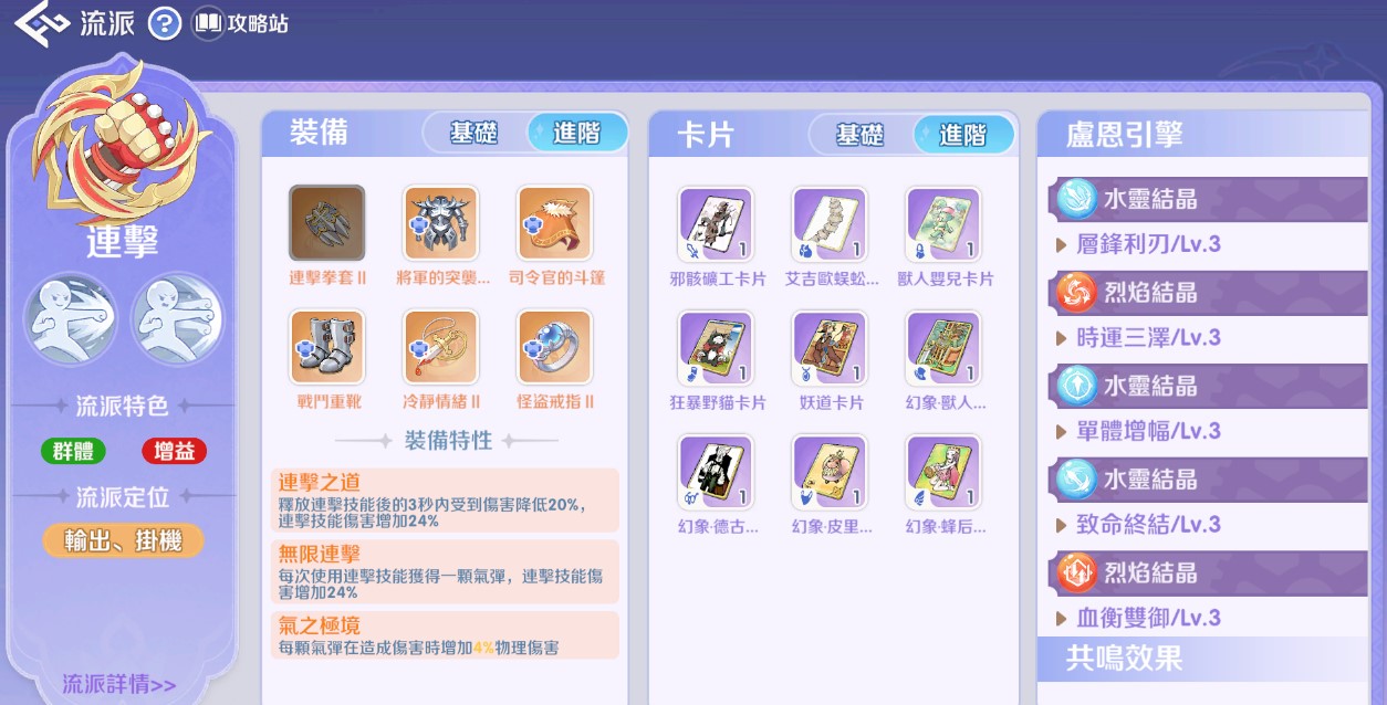 一、 連擊流派 (定位:輸出、掛機)