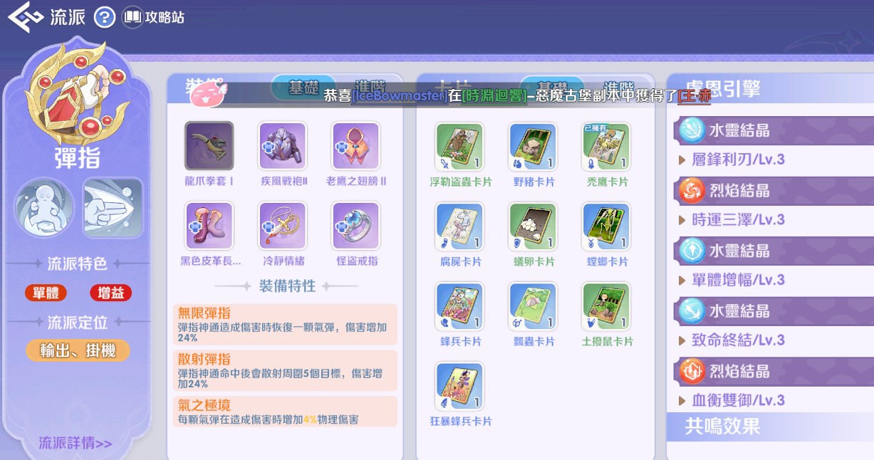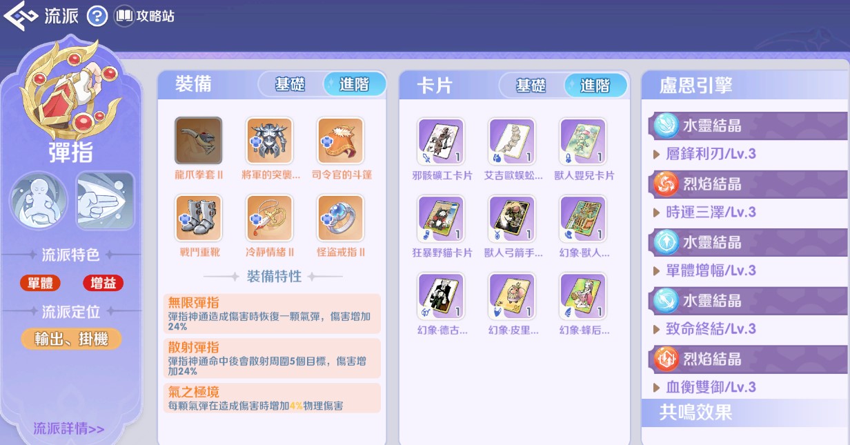 二、 彈指流派 (定位:輸出、掛機)