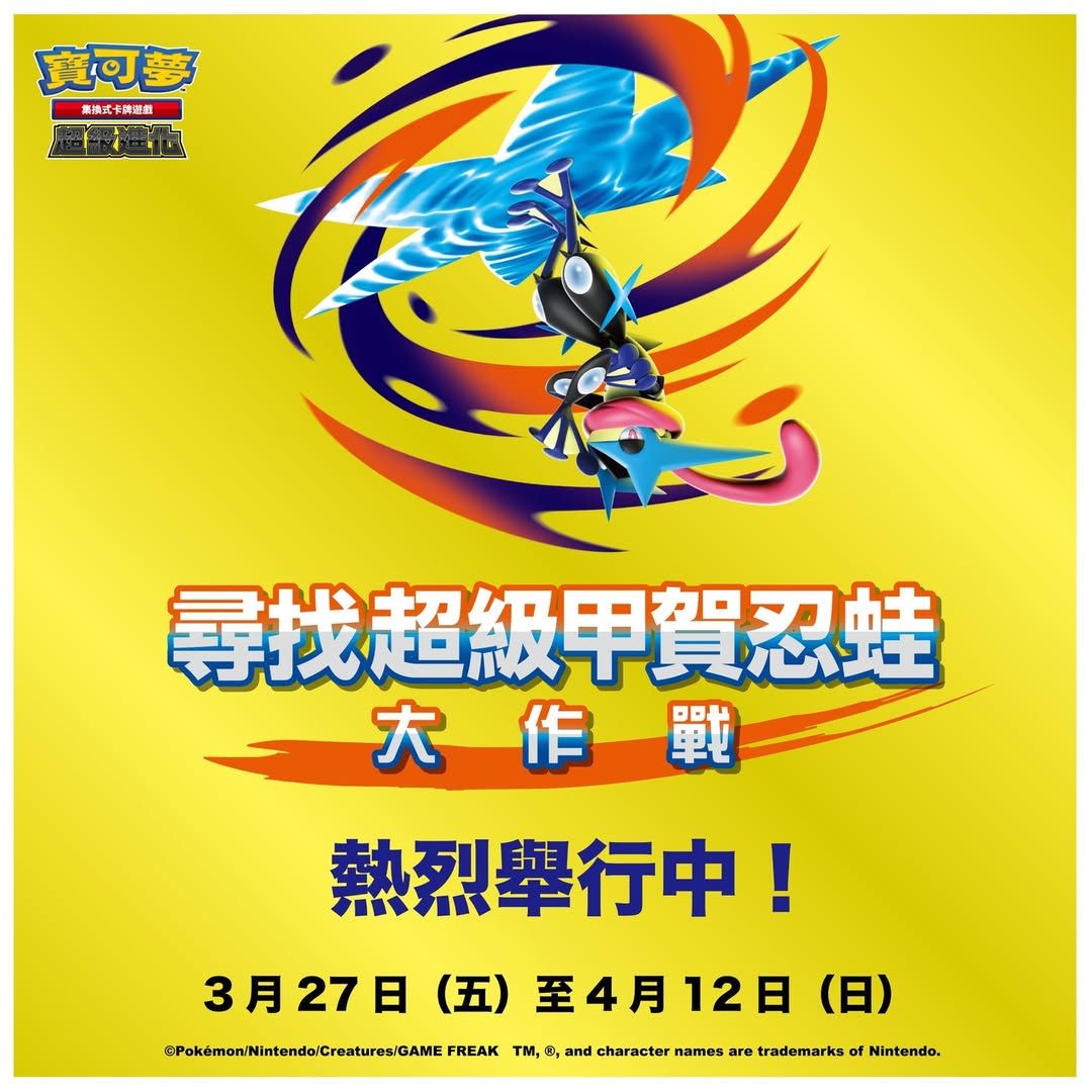自今天2026年3月27日(五)起舉辦「寶可夢集換式卡牌遊戲 尋找超級甲賀忍蛙」活動!🔍