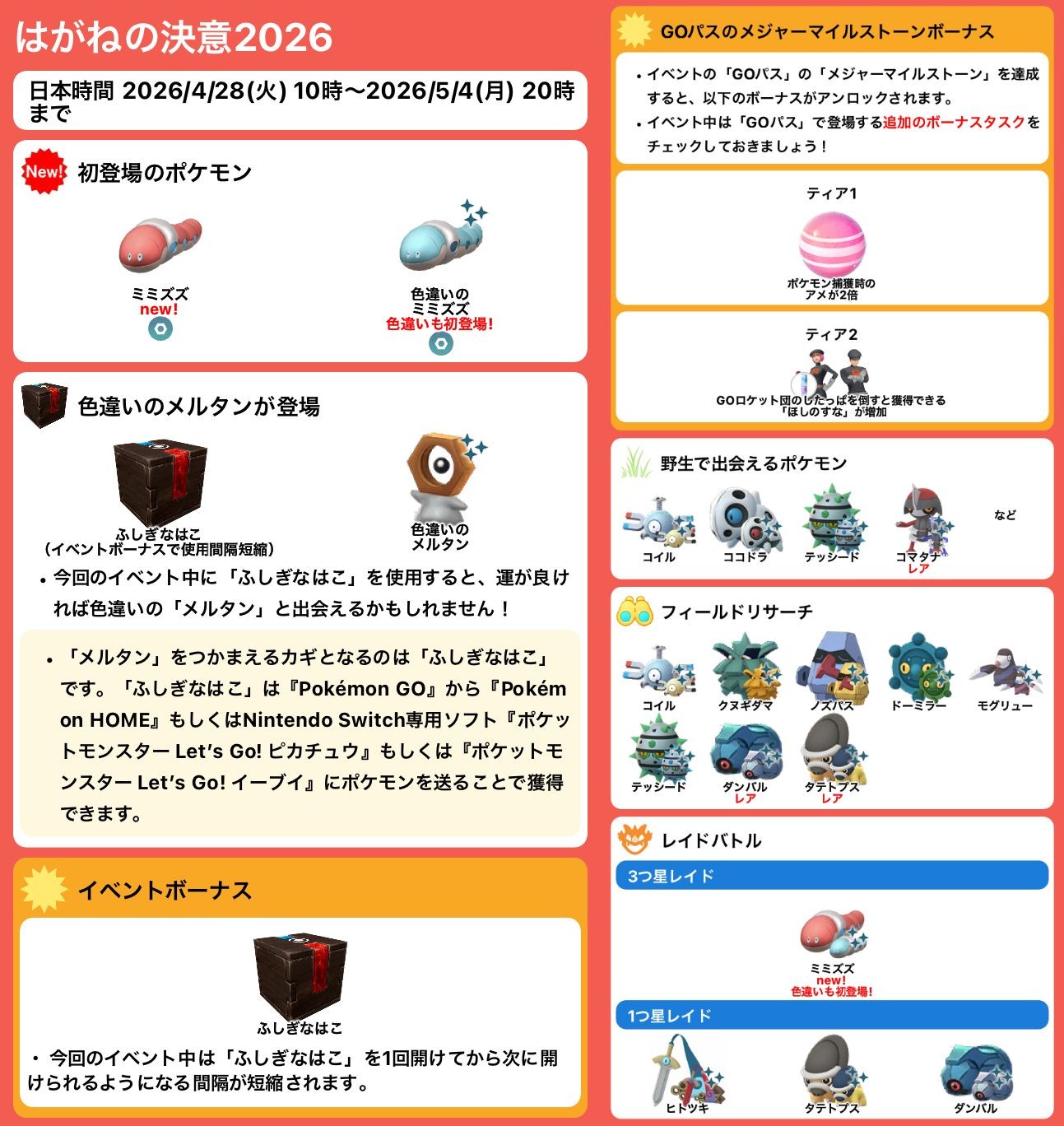 04/28 鋼之決心 活動田野調查任務 拖拖蚓初登場 異色美錄坦 神秘盒子時間縮短 Pokemon GO 2026