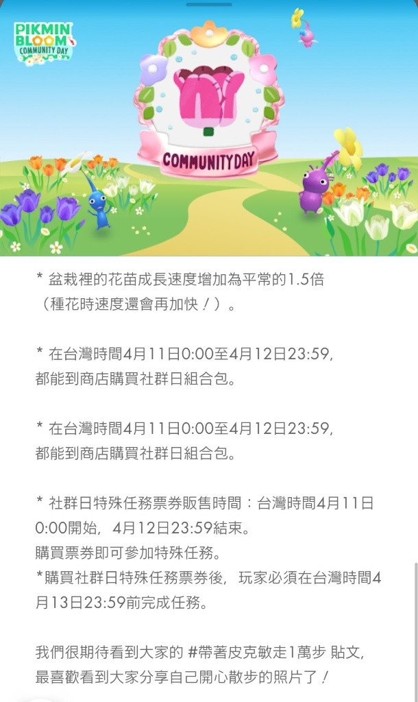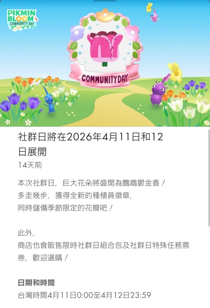 4月社群日提醒 皮克敏攻略教學 Pikmin Bloom 2026