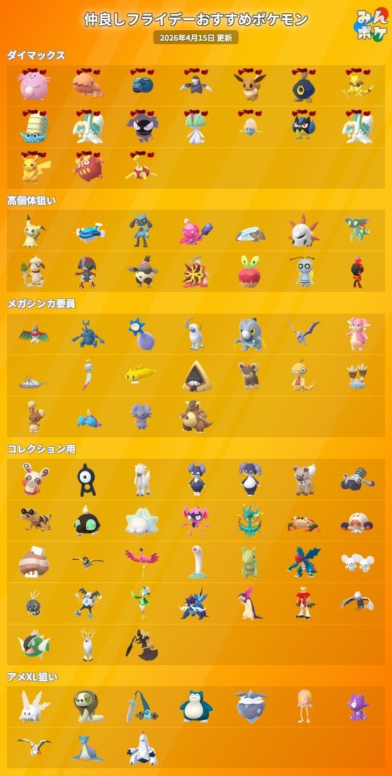 仲良しフライデーのおすすめ交換ポケモン一覧を更新しました!スナヘビの進化後のサダイジャはキョダイマックス個体が存在し、ムゲンダイナのフィールド効果なしだとドリ