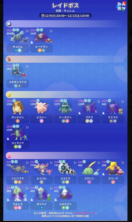 ● 2025年12月14日:超極巨化卡比獸極巨對戰日 💯CP 1843