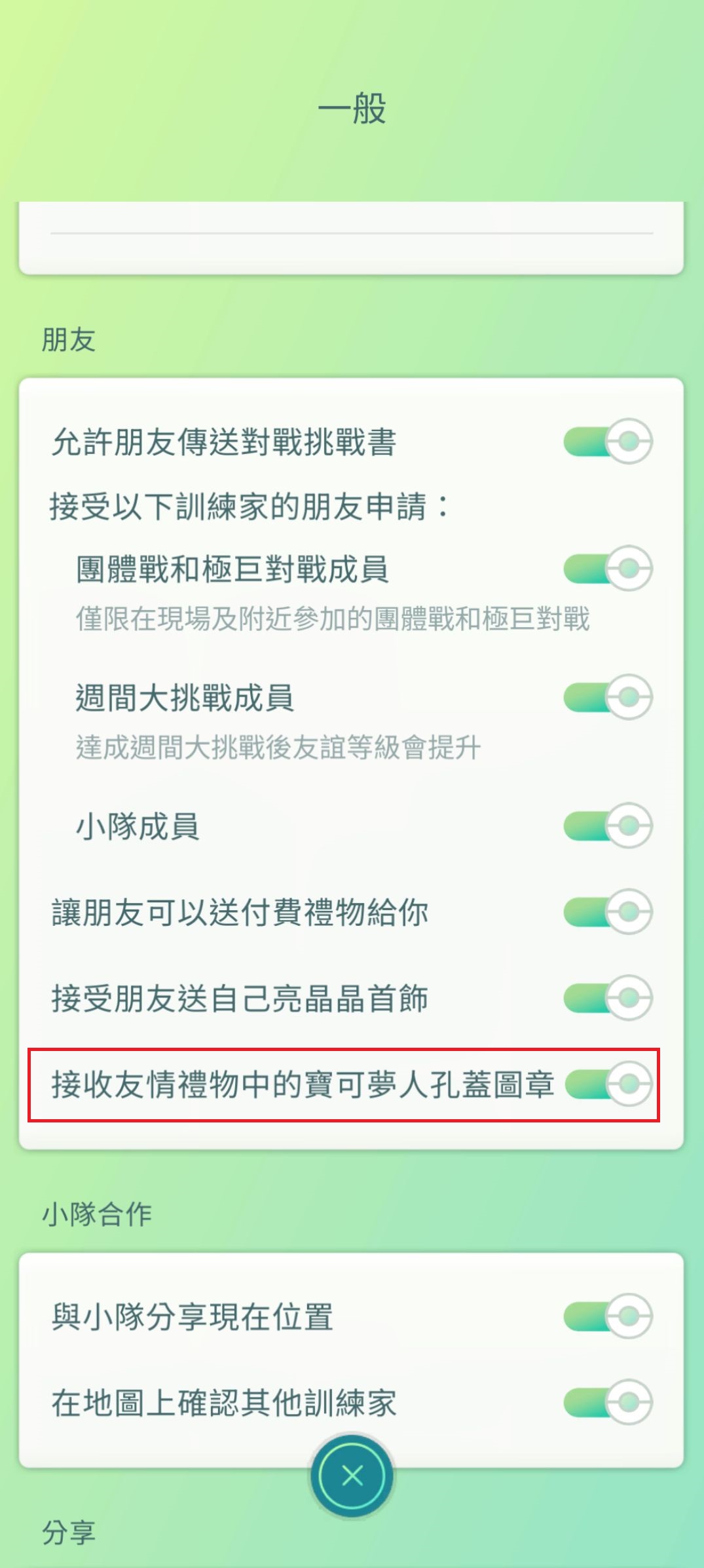 把接收友情禮物中的寶可夢人孔蓋圖章關閉