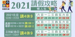 2021請假攻略圖表、連休、休假懶人包