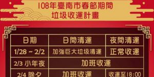 2019台南108年春節期間垃圾車清運表、廚餘、資源回收