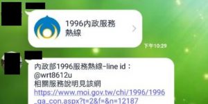 內政部1996服務熱線line id官方帳號