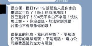 【非謠言】撥打1911登錄台電獎勵、電錶電號