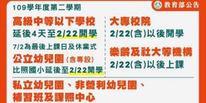 高級中等以下、大專校院學校109學年度第2學期開學日至2月2 …