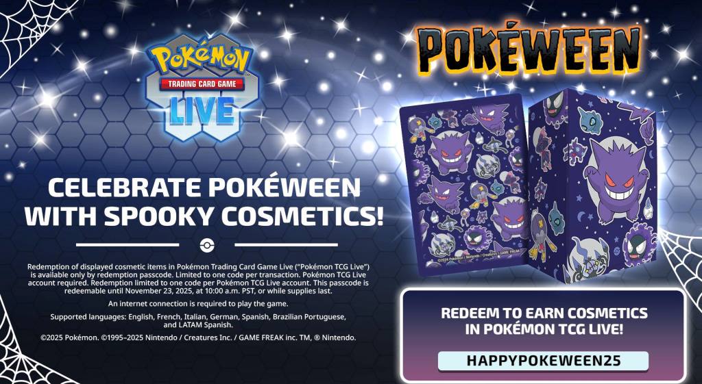 Pokemon TCG Pocket 寶可夢卡牌 / 寶可夢Pokemon GO最新資訊 寶可夢卡牌 直播領取序號 萬聖節耿鬼套裝組 Pokémon TCG 2025 寶可夢卡牌 直播領取序號 萬聖節耿鬼套裝組 Pokémon …