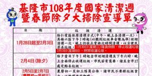 2019基隆108年春節期間垃圾車清運表、廚餘、資源回收