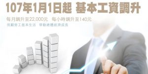 107年(2018)基本工資調漲140元、最低基本工資22000元